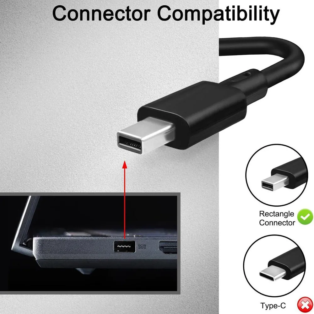 Dit model is uitgerust met de nieuwe rechthoekige stekker (Rectangle Connector). Deze is plat en herkenbaar aan de specifieke vorm die lijkt op een brede poort. Deze lader past niet op laptops met de traditionele ronde oplaadpoort. Ideaal voor de nieuwste ProArt- en TUF-modellen.